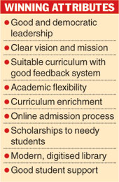 The criteria used by the council to assess institutes are curricular aspects, teaching-learning and evaluation, research, consultancy and extension, infrastructure and learning resources, student support and progression, governance, leadership and management, and innovation and best practices.