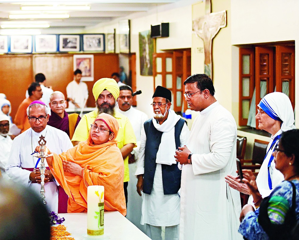 An inter-faith prayer service, organised by Missionaries of Charity and The Archdiocese of Calcutta, to celebrate the canonisation of Mother Teresa at Missionaries of Charity on Saturday. Around 200 people from several communities took part in the prayer service. Picture by Amit Datta