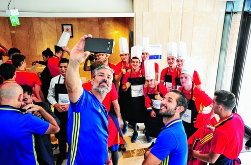 For the La Roja, the cake-mixing session was a welcome distraction, even if for a while. They walked in at quarter to 11, dressed for the occasion in chef hats. The boys had a ball pouring in the customary liquor into the mix of dry fruits and nuts for the Christmas cake. Several of them whipped out their phones to click groupfies.