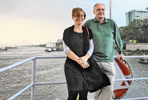 As lightning streaked across the dark sky and the river, a West Bengal Tourism Development Corporation vessel set sail from Babughat on Tuesday evening on a special tour. Gaston Stronck, the ambassador of the Grand Duchy of Luxembourg, and wife Monika Aigner stood on a sheltered deck, taking in the fury of Calcutta’s kalbaisakhi, an unfamiliar sight in the cold climes of their country. Metro captured the sights and sounds with the guests