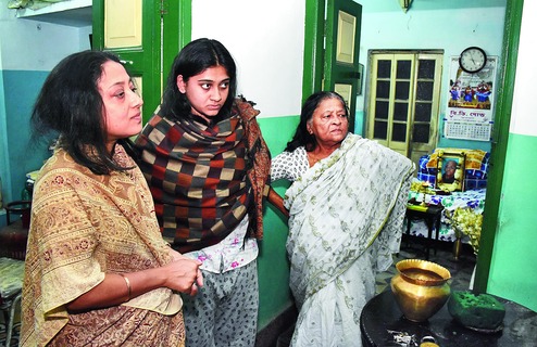 Manjulika, who lost her son 19 years ago and her husband this month, lives in 2 Fordyce Lane near Santosh Mitra Square with her daughter-in-law Barnali and granddaughter Sukanya. The family suspects that someone entered the three-storey house either through the balcony that is accessible from the terrace of adjoining buildings or through the window with sliding panes near the washroom.
