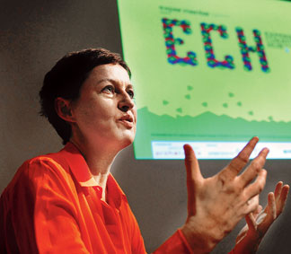 | Curator Kathrin Rhomberg makes her presentation at the Hub (picture by Sanjoy Ghosh); a portrait of Stella Kramrisch | |
