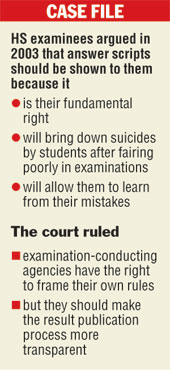 “I want to know from the court whether students have the right to see their answer scripts. A student should have the right to know whether his answer script was properly evaluated or not,” said Pritam, who filed the case in the high court in January.