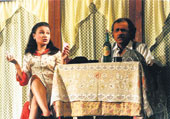 Usha Ganguli is one of India's well-known theatre directors, who has been leading Rangakarmee for nearly 25 years. Yet, she still remains essentially an actress who loves to take on challenging roles. Her artistic growth as an actress has been rooted in a concern to react and respond to all those forces that inhibit the fulfilment of humanity. The characters she has played over the years have been, for her, experiences of living other lives and learning the modes of survival and the struggles they call for - in different situations. The women she has created and lived on stage have been drawn on Gorky, Ibsen, Wesker, Kroetz, Brecht, Franca Rame, Dario Fo, Rabindra Nath Tagore and contemporary Indian playwrights including Mahesh Elkunchwar, Ratnakar Matkari, Mannu Bhandari, Mahasweta Devi and Shafaat Khan, and above everything else, on the plight of women living in different social and economic strata. As she plays out some of these roles in this collage of acts ('...in conversation with my characters'), she demonstrates her negotiations with a rich and complex reality through her performance. This Rangakarmee production is written, directed, designed and performed by Ganguli. The innovative set has been designed by Khaled Choudhury, recipient of this year’s prestigious Kalidas Samman.
