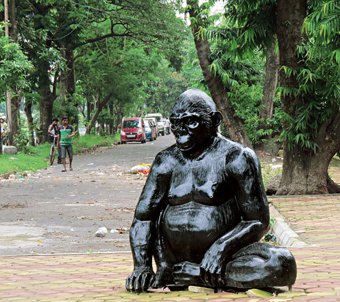 “I nearly jumped out of my jogging shoes when I thought I saw a gorilla sitting on the pavement. But another morning-walker told me that it was just a statue,” said Neha Agarwal a resident of FE Block.