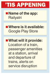 Railyatri, the app launched by a Delhi-based company, promises comprehensive information on the location of a particular train, passenger amenities at a particular station, platform number where the train will arrive, announcement of new trains and personalised alerts on service disruption.