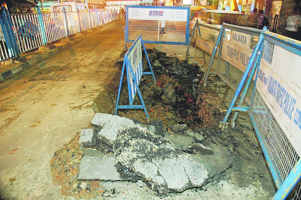 A couple of weeks ago, a 1.5ftX1.5ft stretch of the Gariahat-bound flank of Rashbehari Avenue had caved in near the western end of the Ballygunge bridge. A CMC engineer had said sometimes roads caved in without any signs of leak in underground utilities.