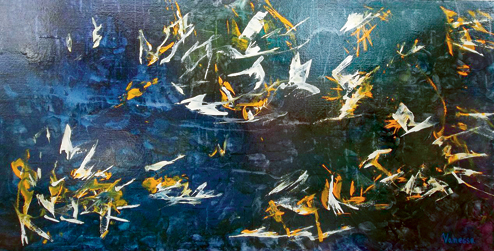 | Ducks on the River, a painting by (below ) Vanessa Mirza |