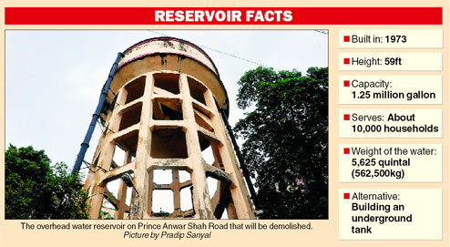 The civic body will pull down a concrete water reservoir near Navina cinema after two Jadavpur University professors declared it “unsafe and precarious”, the first instance in the city of a concrete structure being pulled down while still in use.