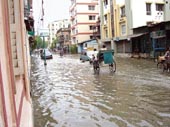 Ground-floor rooms often get flooded. Hand-pulled rickshaws make brisk business ferrying people from one end of waterlogged zone to the other, which is about 100 metres.