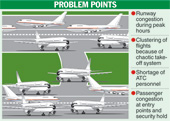 According to airport officials, pilots seeking clearance for take-off even as passengers are boarding is one of the main causes of clustering on the runway. This usually takes place between 5 and 7am, 9.30 and 11.30am, 4 and 6pm and 7 and 8pm, when 20 to 25 flights take off on an average.