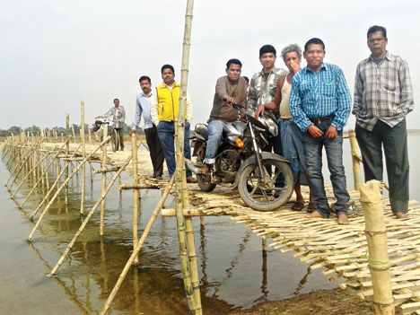 Despite several demands for a concrete bridge over the 1km stretch over the Damodar, nothing has been done. The bamboo bridge built by a local panchayat collapses almost every monsoon.