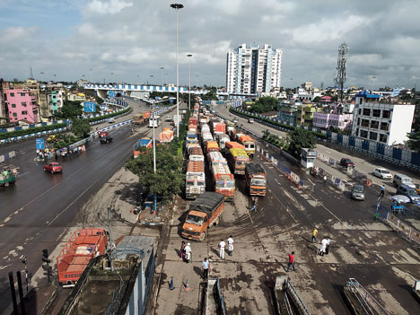 Around 3,500-4,000 loaded trucks leave Calcutta every day, carrying readymade garments, plastic goods, tea and vegetables to states like Maharashtra, Gujarat, Uttar Pradesh and Karnataka.