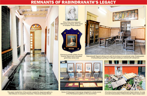 The building had been taken over by the state government during Tagore’s birth centenary celebrations in 1961, but only after the section of the house (Baithak-khanabari at 5 Dwarkanath Tagore Lane) in which the two famous nephews of Rabindranath — Gaganendranath and Abanindranth —resided had been demolished.