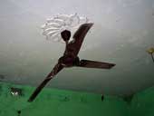| The ceiling fan of Yubak Sangha club hangs distorted after the melee. Picture by Soumen Bhattacharjee |