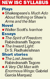 The number of poems, essays and short stories in the ISC syllabus has been slashed from 15 to 10. All the essays, poems and short stories are different from the ones in the old course. Ditto for ICSE.