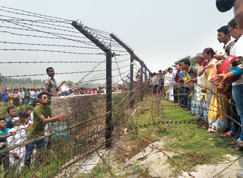 The grand display of the border bonhomie was witnessed at Bholapara and Bhatpara in Rajganj block of Jalpaigri district. As the border guards of India and Bangladesh kept vigil, the people stood along the barbed fence since morning. On the other side were mostly the residents of Panchagarh district in Bangladesh.