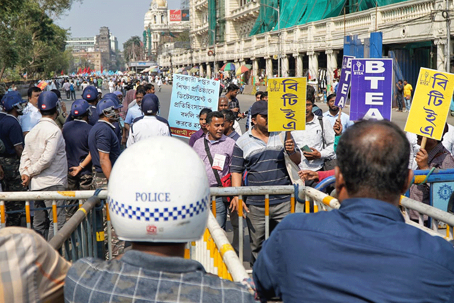 Police put up barricades at Esplanade on the road towards Kalighat, refusing to let the agitators move forward.