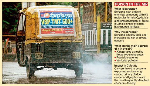 A study by Jadavpur University had revealed that benzene was one of the main components of katatel, an adulterated version of petrol that most two-stroke autorickshaws used as fuel.