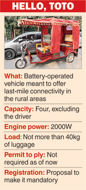 According to a conservative estimate, more than 1.5 lakh totos operate across the state. Calcutta and its fringes have the highest density of totos, followed by Behrampore and Siliguri. Transport department officials said it was difficult to determine the exact fleet strength in the absence of registration data. At least four new totos hit the roads every day.