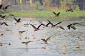 “Two kinds of migrants come here: birds like pochard that rest and feed in the lake, and birds like Northern Pintail that rest and fly off at night to feed elsewhere,” explained Supriyo Samanta, another member of Prakriti Samsad.