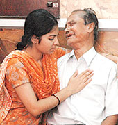 | Bidyut Acharya’s sister consoles their father after his body was identified at SSKM on Monday. (Sanat Kr Sinha) |