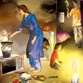Having nothing to do, a family huddles together, in one room, for too many burning candles produce too much heat, and has no choice but to talk to each other. Candles are in short supply as well.
