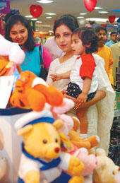 | Dona Ganguly browses the toy section at Landmark with daughter Sana. Picture by Pabitra Das |