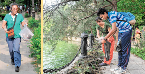 Every Sunday morning over the past two months, around 40 students of Modern High School for Girls and La Martiniere for Boys have been picking up all kinds of litter - such as plastic cups, potato chips packets and bidi-ends - from the Sarobar greens.