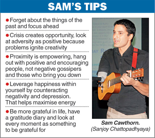 Sam’s kairos came when he fell asleep on the steering wheel while driving down a highway in Australia. His car collided head-on with a speeding truck. “I was 26, at the prime of my life and doing all kinds of things. I had my dance studio, I would take singing classes and I had a full-time job as a youth futurist with the federal government. On the other hand, I had my wife and two daughters. And then suddenly I die in a car accident!” smiled Sam, gently shocking the audience at an interactive session presented by the Lions Club of Howrah and The Advertising Club and partnered by The Telegraph at The Park recently.