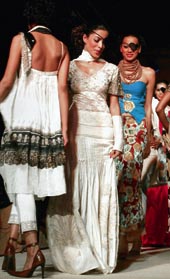 The surface ornamentation was varied ? digital prints, beadwork, cutwork, zardosi and chikankari. “I have always been fascinated with fabrics of different regions ? be it Rajasthani, Benarasi, or chikankari from Lucknow. I’ve been working with Pakistani fabrics for quite sometime now and I think they have some great textiles and crafts to offer us,” rounded off Rina.