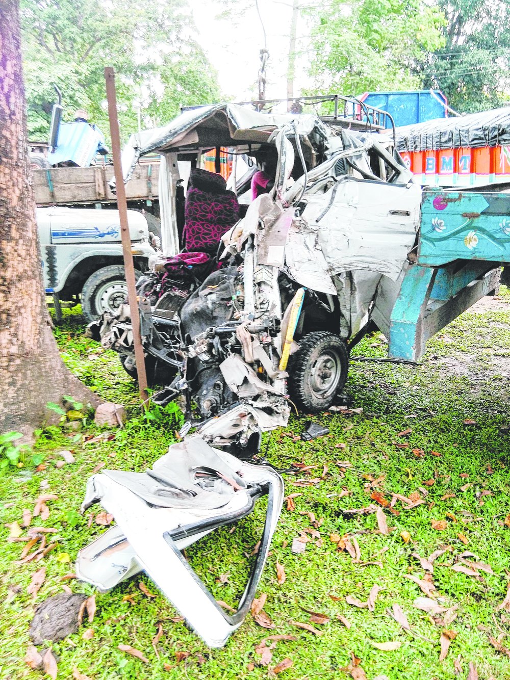 Seven persons died on the spot and six at Madarihat block hospital. The driver of the van, Vinod Shah, 31, died while being taken to North Bengal Medical College Hospital (NBMCH). Eight of the injured have been referred to NBMCH.