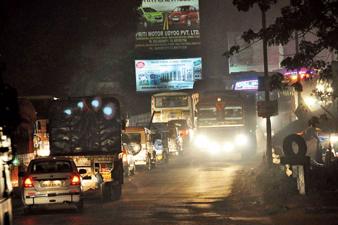 | Heavy traffic jam on Santragachhi rail bridge. Picture by Anup Bhattacharya |