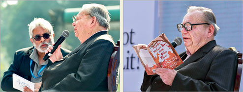 When it came to the children, it was all about trying to find out what was real and what was not in the world that Ruskin Bond has created. Was Uncle Ken real? Did one of his uncles really try to poison him? Did his grandfather really have a zoo? Uncle Ken is real, but Bond didn't dream he was going to become so popular. He wasn't however, poisoned by any uncle of his. His grandfather did, in fact, have some interesting pets in his garden but he advised children against keeping a python or a mongoose since most people live in apartments these days! Starry-eyed, dreaming of Rusty and clutching their copies of various Ruskin Bond books the children, and some adults, formed a serpentine queue to get their books signed long after the session was over.