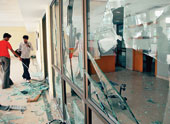 | Peerless Hospital wore a wounded look on Wednesday with broken furniture and shards of glass. (Amit Datta) nAnother report on Page 23 |