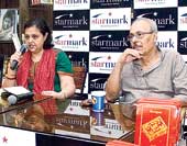 | Srilata Banerjee and Shirshendu Mukherjee at the book reading on Friday and (below) the book cover |