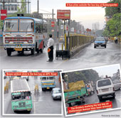 Bus bays are the latest addition to the long list of traffic management initiatives that have backfired in the city. Last year, corridors for the exclusive use of buses were demarcated on eight busy thoroughfares to minimise snarls and allow easy flow of vehicles. But most buses ignore the bays creating more snarls on the narrowed carriageways. The majority of the bays now serve as free parking lots. There are provisions to fine bus drivers as much as Rs 2,000 for not using the bays, but police do not do so. Metro visits three bus bays in the city and finds out why they do not work: