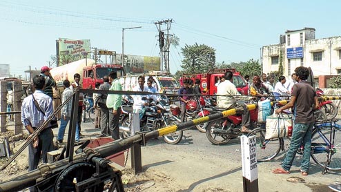 Traffic slows down in Dalkhola mainly because of the railway level-crossing.