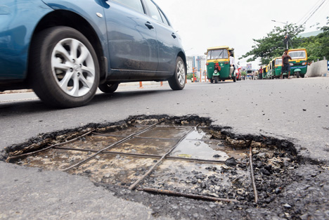On the Salt Lake Bypass, vehicles cut left and right and motorbike riders swerved to avoid potholes that were hard to miss.