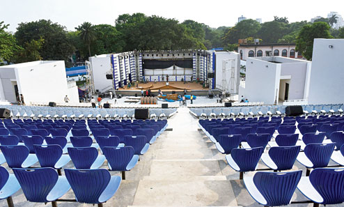 A patch of land in Alipore that used to be a cow shelter has metamorphosed into a multi-facility cultural complex called Uttirna, next to the Women’s Correctional Home. The two-acre compound has an open-air theatre and a six-storey building that houses several facilities — 10,000 sq ft of office space, guest rooms, dormitories, a media centre and even a rooftop café. One of the floors has a 12,000sq ft banquet hall. Ramps have been built for people needing mobility assistance to reach any of the floors without much difficulty. The ramps lead to the second floor of the building, from where elevators are available. A senior engineer in the PWD, which built the amphitheatre and the six-storey structure, said it had not been decided yet how the open-air theatre, café and banquet facilities would be run. “These decisions will be taken later,” he said.
