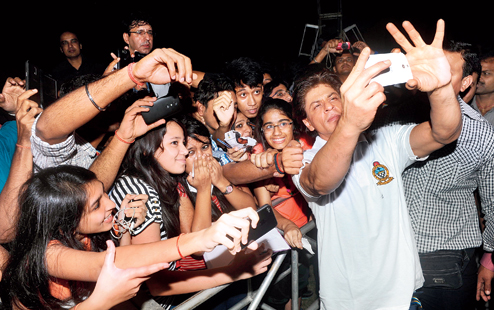 Shah Rukh Khan clicks a fan selfie after rocking Indiawaale Kolkata Mein Chha Gaye! presented by t2, on the St. Xavier’s College grounds |