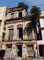 UN Brahmachary, who had invented the kala-azar antidote urea stibamine, lived on Loudon Street and this huge house on Bidhan Sarani used to be his office. Derelict today, the groundfloor of La Jardinette is still a huge bazaar. Shoppers and residents don’t mind the dilapidation. | ![]() |