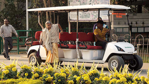 Supriya Banerjee, 68, was pleasantly surprised when she reached Belur Math on a Saturday afternoon. The resident of Calcutta was visiting the Math after a year. All the way from home, she was silently wondering how she would walk the distance to the temple from the main gate. Arthritis has damaged both her knees and she can hardly walk. As she got off her car at the main entrance, Supriya was received by a white golf cart that was waiting at the gate to collect people and drive them down to the temple premises.