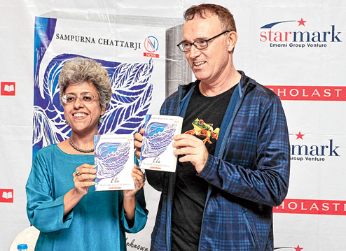 | Sampurna Chattarji and Ken Spillman at the launch of Ela at Starmark, South City, on Saturday. (Anindya Shankar Ray) |