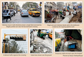 The Karunamoyee crossing in Salt Lake has become a nightmare for commuters over the past few months. A major part of the roads leading to it is out of bounds because of work on various projects. Parked vehicles and shops take up most of the remaining road space. Add to this faulty traffic management and it is clear why accidents are common at Salt Lake’s busiest intersection, which nearly 7,000 vehicles cross in an hour at peak time. Metro takes a look at the problems that plague the crossing.