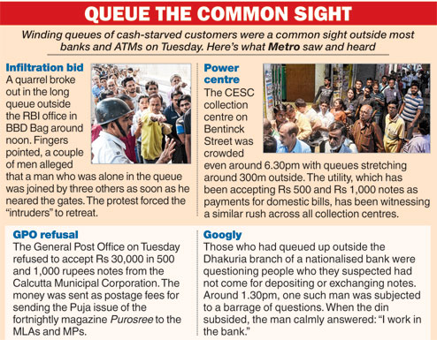 With less than a fortnight left for the conversion of old notes to new, chartered accountants in their cluttered offices in shabby buildings off Lalbazar Street, Metcalfe Street and Weston Street have gone into overdrive to bail out clients. None of these offices have landlines or name plates to maintain anonymity.