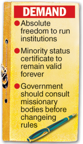 Priests, nuns and representatives of the 95 church bodies that run the schools will meet at Calcutta Girls School on Saturday to discuss their course of action. “We will first approach the state government. If it turns its back on us, we will knock on the Centre’s door. There will also be demonstrations and token protests,” said a senior official of a Christian school.