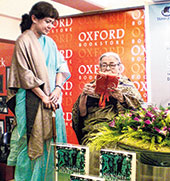 | Madhusree Mukerjee (left) and Mahasveta Debi at the book launch |