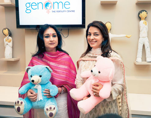 | Juhi Chawla, with Madhu Neotia, inaugurated Genome, a fertility centre at 67 Shakespeare Sarani, on Friday evening. The 15,000sq ft clinic is part of Neotia Healthcare Initiative. “I was anti-children before my marriage, I could not handle their boundless energy. All that changed when I had kids,” said Juhi, who visited Kalighat temple in the morning to pray for her KKR boys. Picture by Sanjoy Ghosh |