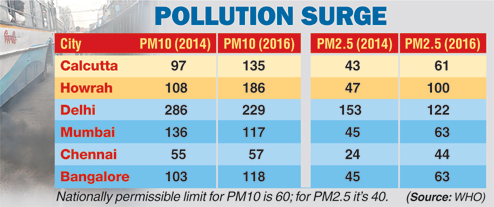 The 2014 WHO report said PM10 in Calcutta was 97 micrograms in a cubic metre of air. PM2.5 was 43 micrograms.